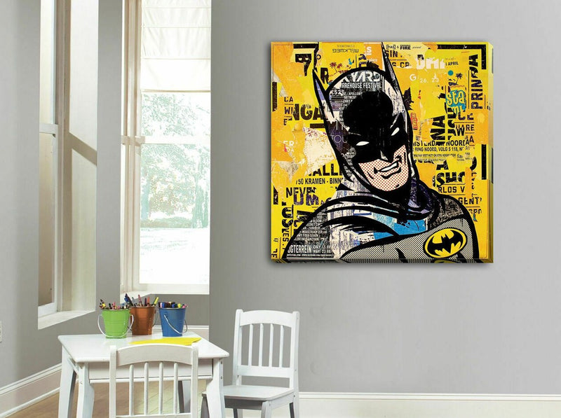 Invite a touch of comic tone into your kids space with "batman" stretched canvas print from HY Wall Art