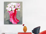Give your walls a dramatic, modern update with the Flowers in Rainboot Canvas Print from hy wall art.