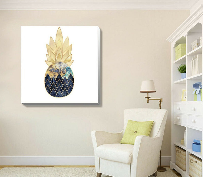 Cool your interior colour palette with the blended gold and blue tones of the pineapple Canvas Print from hy wall art.