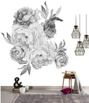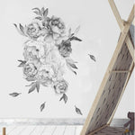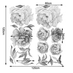 Large Black Peony Rose Flowers Blossom Wall Stickers