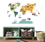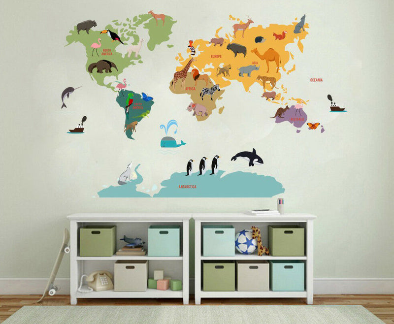 Add cute chic look on your kids wall with safari animal worldmap Wall Decal