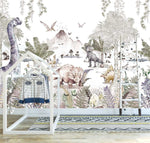 Bring whimsy in your little one's room, dinasour world mural is a perfect way to escape to nature within your home