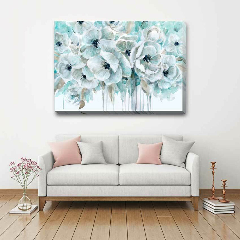 Delight in the relaxed, tropicana vibes of teal flower Canvas Print in your home.