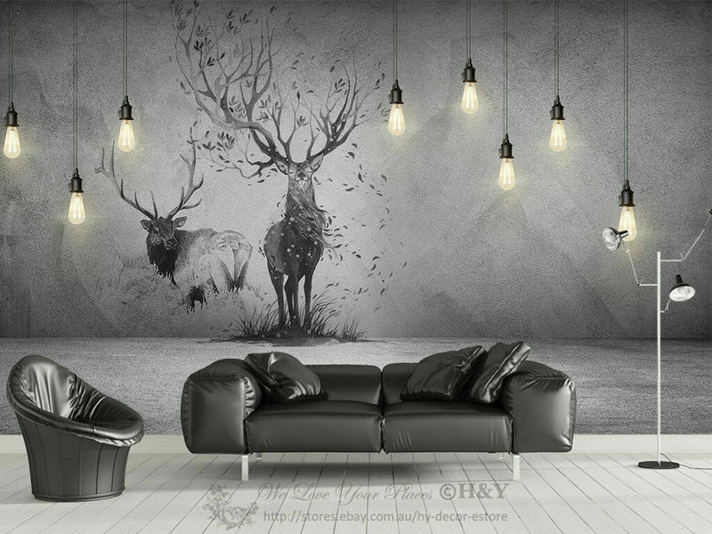 Deer With Hanging Lamp Removable Wall Mural Paper Vinyl Sticker Home Decor AM3