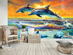 Make a brave visual impact on your walls with the vibrant colours and mild animalistic look of the dolphins Wall mural from HY Wall Art, a durable wall mural made from quality textile vinyl