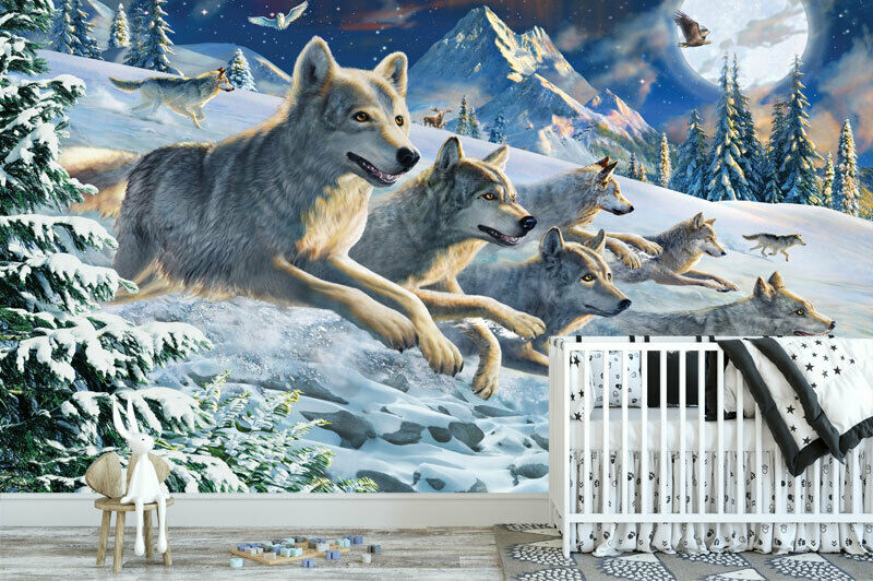 Reveal the charm of native fauna in your little one's space with moonlight wolf Wall mural from HY Wall Art