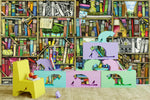 Dramatic pops of colour and expressive textures make a bold statement in your space with bookshelf mural from HY Wall Art.