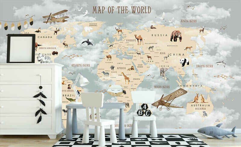For dreamy design to capture attention opt for the Animal Worldmap Wall Mural from HY Wall Art