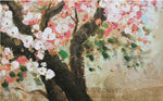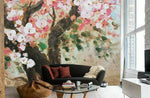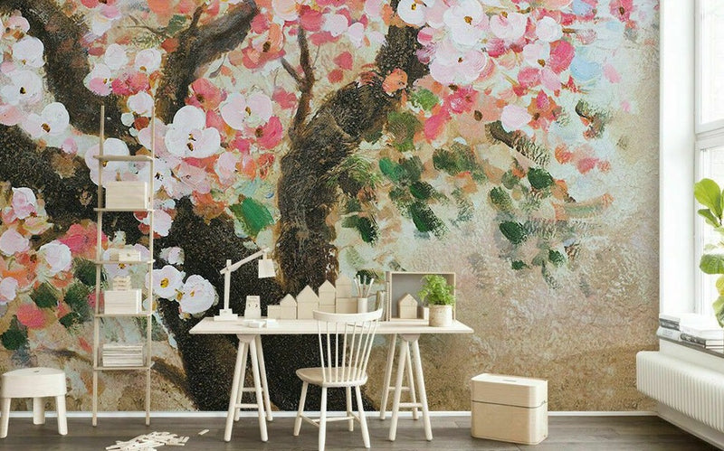 Inform your aesthetic with intense, modern artistry with the cherry tree mural from HY Wall Art