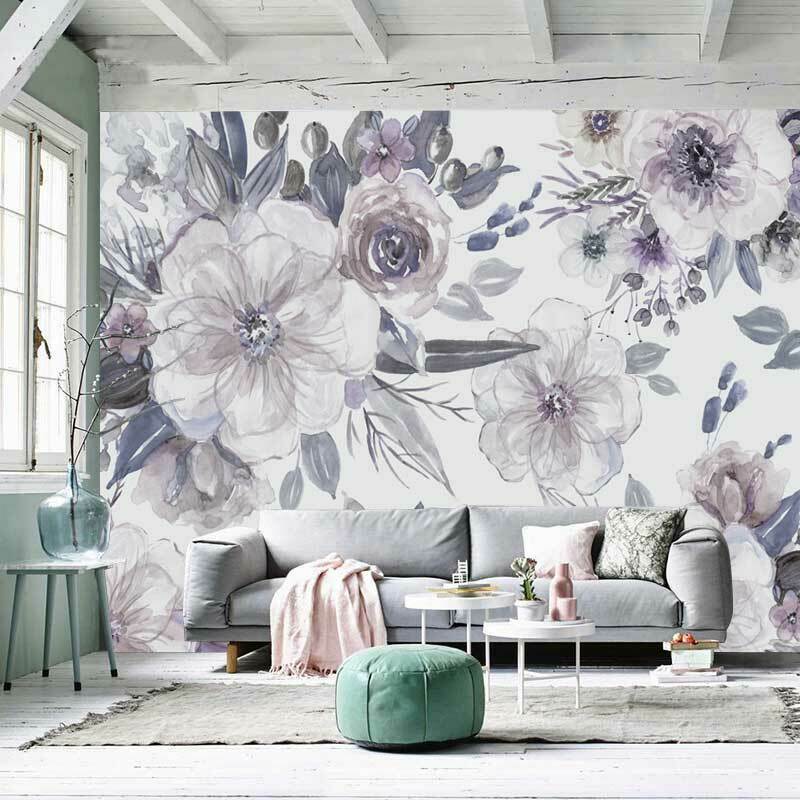 Capture soft tones and sweeping movement in your décor with the embriodered floral mural from hy wall art on your wall.