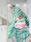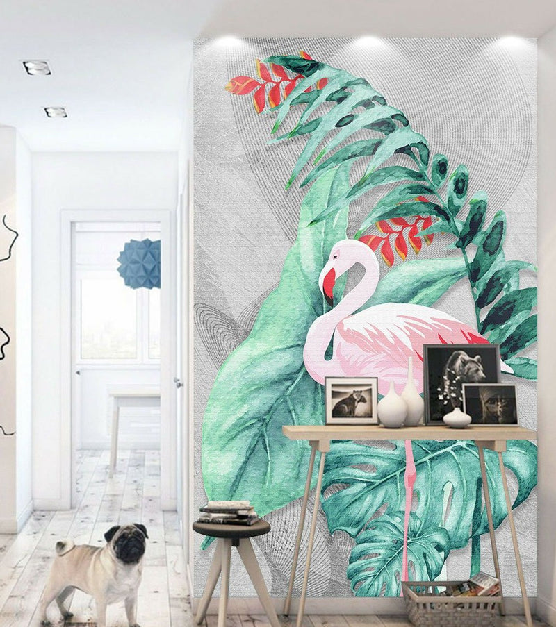 Dramatic pops of colour and expressive textures make a bold statement in your space with flamingo mural from HY Wall Art.