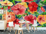 Dramatic pops of colour and expressive textures make a bold statement in your space with flower blossom mural from HY Wall Art.