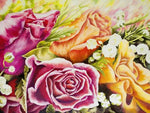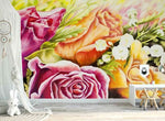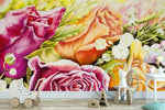 Dramatic pops of colour and expressive textures make a bold statement in your space with Rose blossom mural from HY Wall Art.