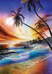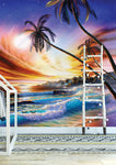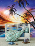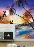 Enhance a neutral aesthetic with tropical tones , plam beach mural from HY Wall Art.