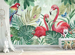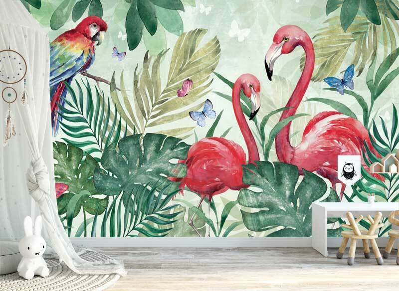 Invite a touch of summer tone into your home with tropical flamingo mural from HY Wall Art.