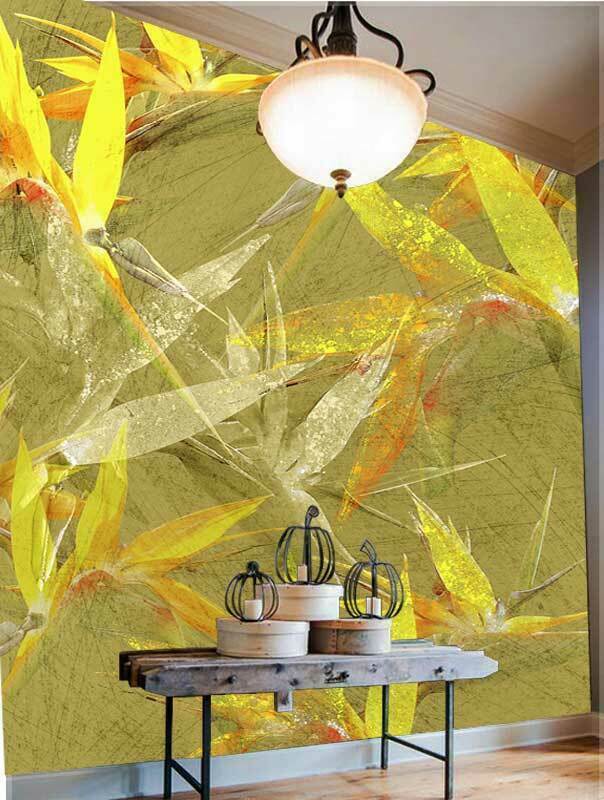 Embolden your interior colour scheme with the powerful, swirling,yellow tones of the leave pattern mural from HY Wall Art.
