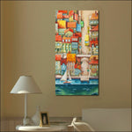 Dramatic pops of colour and expressive textures make a bold statement in your space with Seaside Town Print from HY Wall Art.