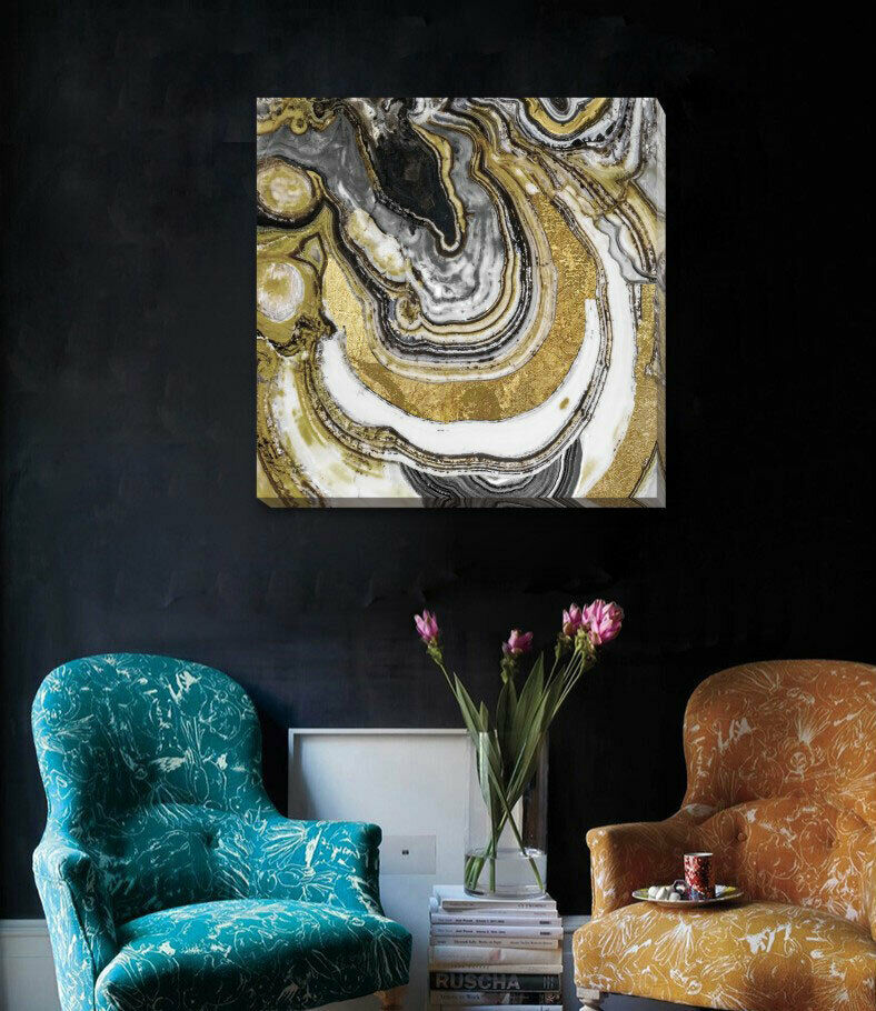 Enhance a neutral aesthetic with marbled emerald tones with Black gold Canvas Print from HY Wall Art