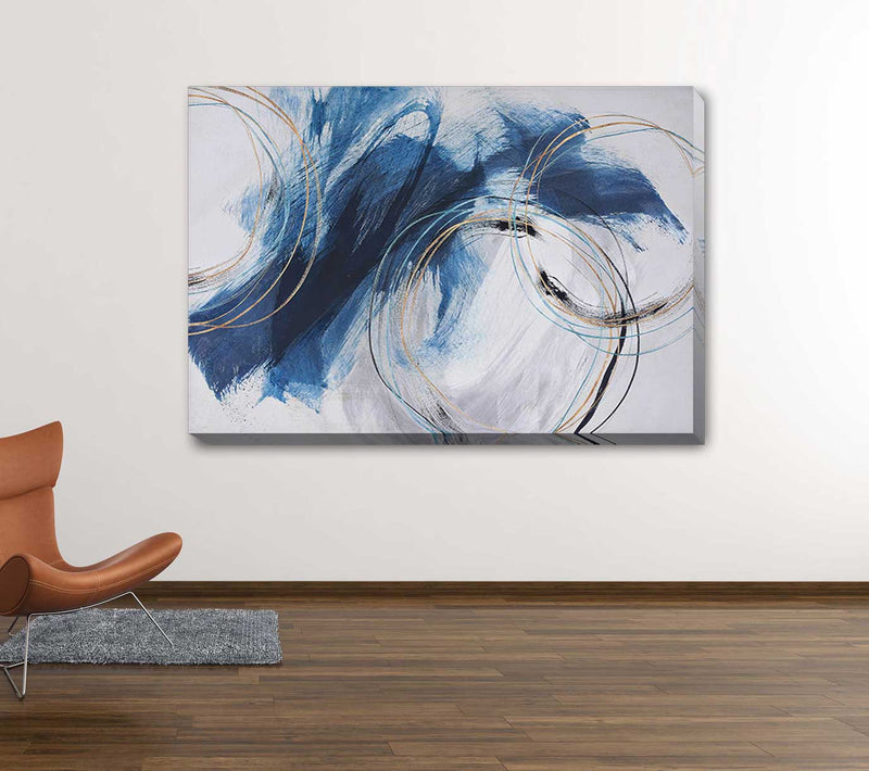 Brighten any room with the contemprary taste of blue circle abstract canvas print from HY Wall Art.