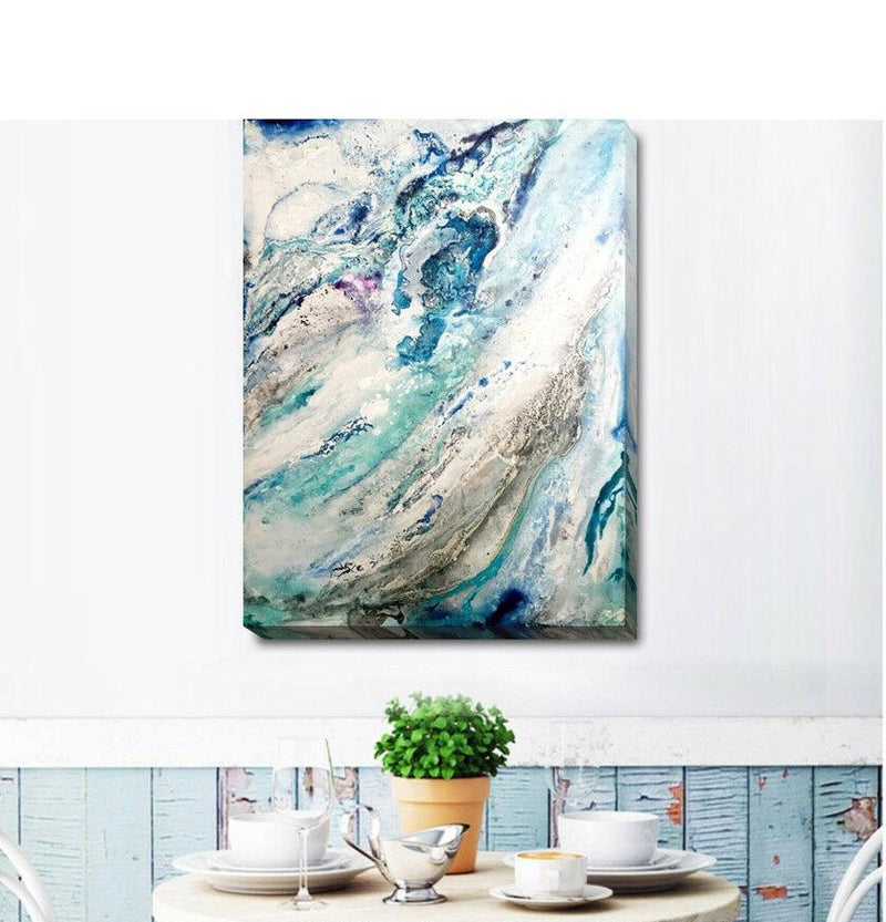 Enhance a neutral aesthetic with marbled emerald tones with blue abstract Canvas Print from HY Wall Art..