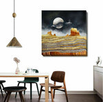 Capture attention with the striking monochromatic brush strokes of Desert In Moonlight from HY Wall Art