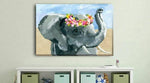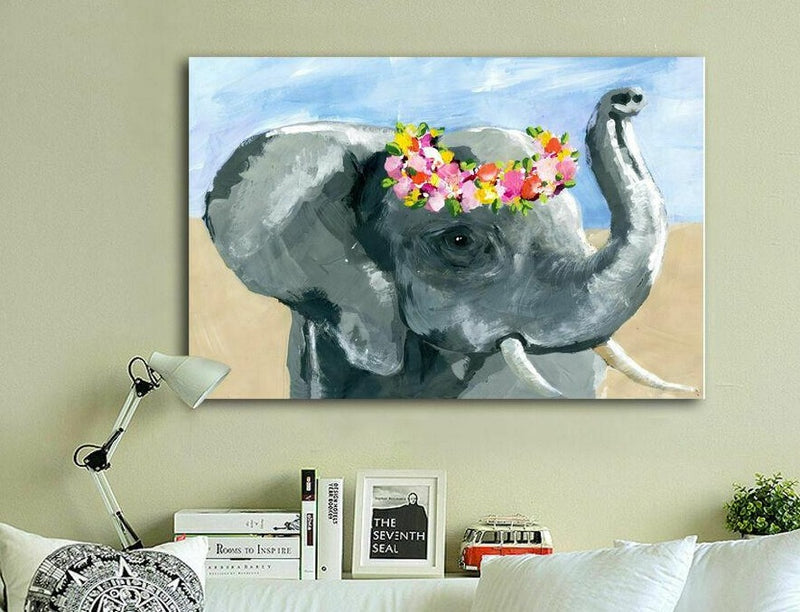 Cool your interior colour palette with the blended blue and gray tones of the elephant Canvas Print from HY Wall Art