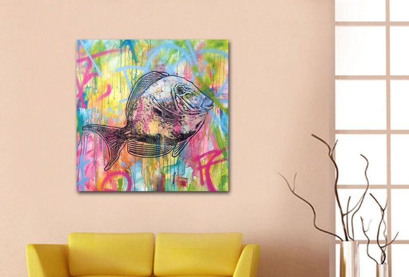 Embolden your interior colour scheme with the powerful, swirling, graffiti tones of the fish Canvas Print from hy wall art