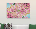 Resplendent in pink, blue, and gold, the Rose Blossom Canvas Print from HY Wall Art beautifully transforms your interior look.