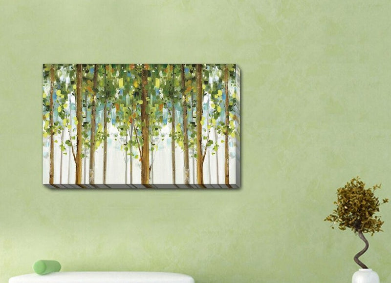 Capture attention with the striking monochromatic brush strokes of green forest from HY Wall Art