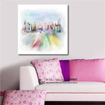 With watercolour shapes and lines that seem to move, the morning in the city Canvas Print from HY Wall Art instantly draws you in and dramatises your space.