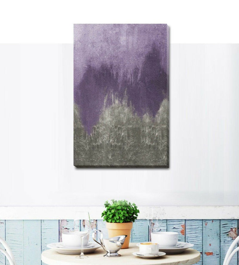 Cool your interior colour palette with the blended purple and gray tones of the abstract Canvas Print from HY Wall Art.