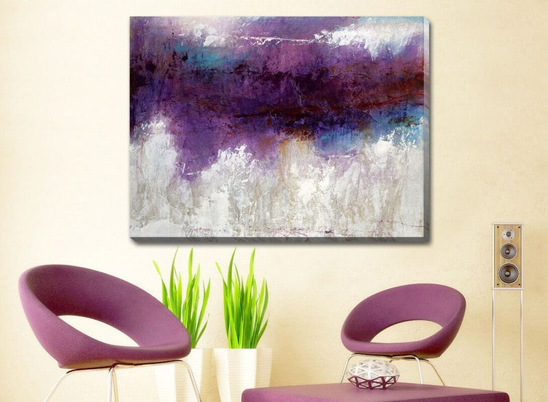 Cool your interior colour palette with the blended purple and gray tones of the abstract Canvas Print from HY Wall Art.