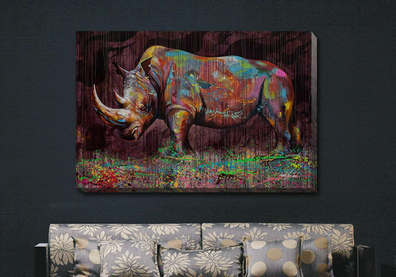 Embolden your interior colour scheme with the powerful, swirling, mixed colour tones of the Rhino Canvas Print from HY Wall Art