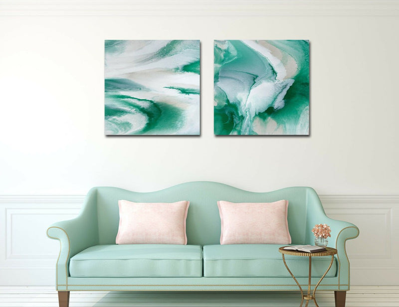 With watercolour shapes and lines that seem to move, the Jade tones of abstract Canvas Print from HY Wall Art instantly draws you in and dramatises your space.