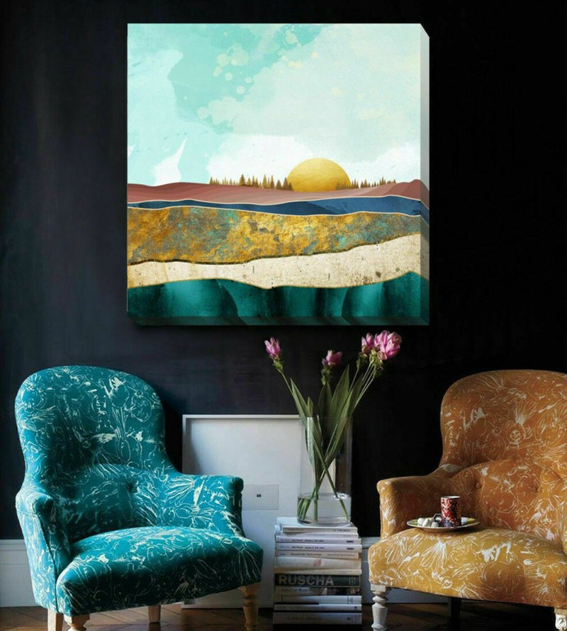Cool your interior colour palette with gold tones of the sunset Canvas Print from HY Wall Art.