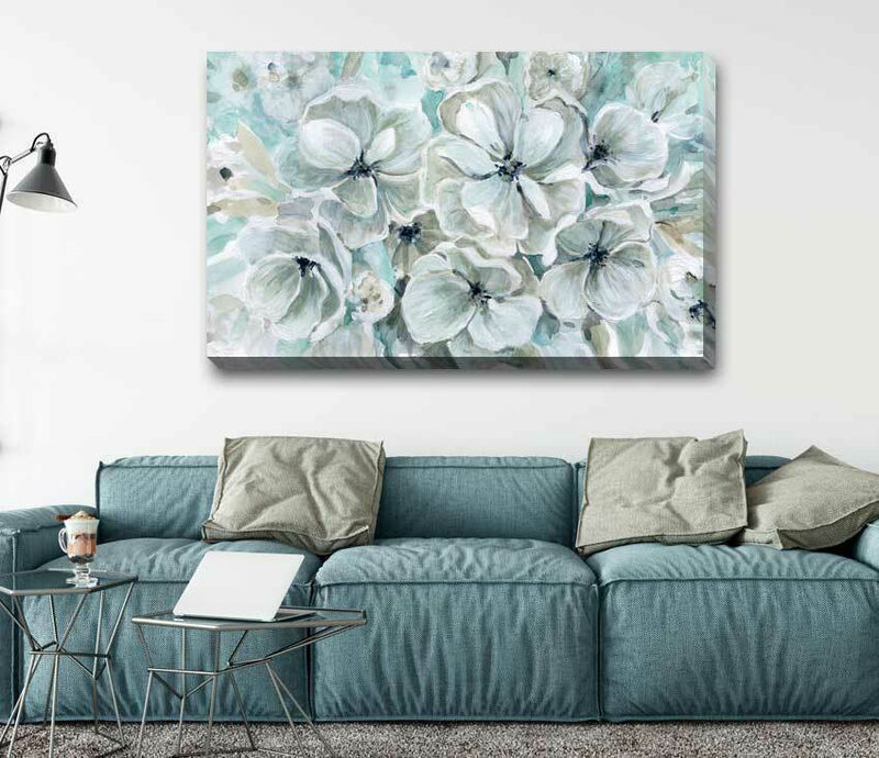 Delight in the relaxed, tropicana vibes of teal flower Canvas Print in your home.