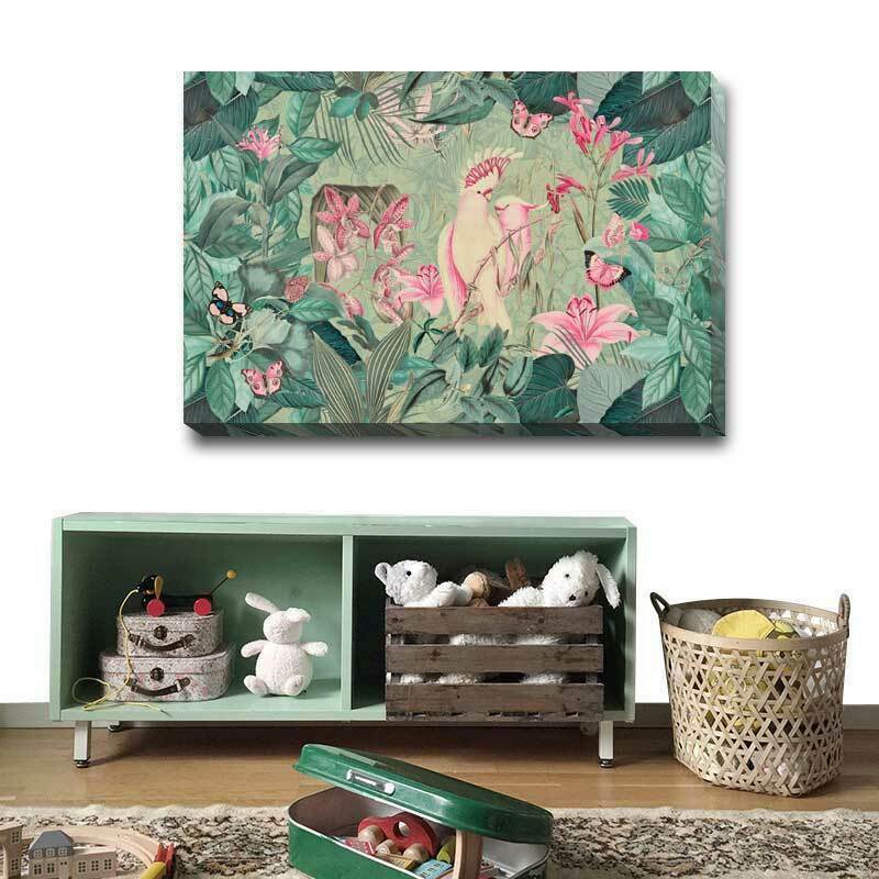 Delight in the relaxed, tropicana vibes and vintage tones of flower and cockatoo Canvas Print in your home.