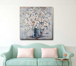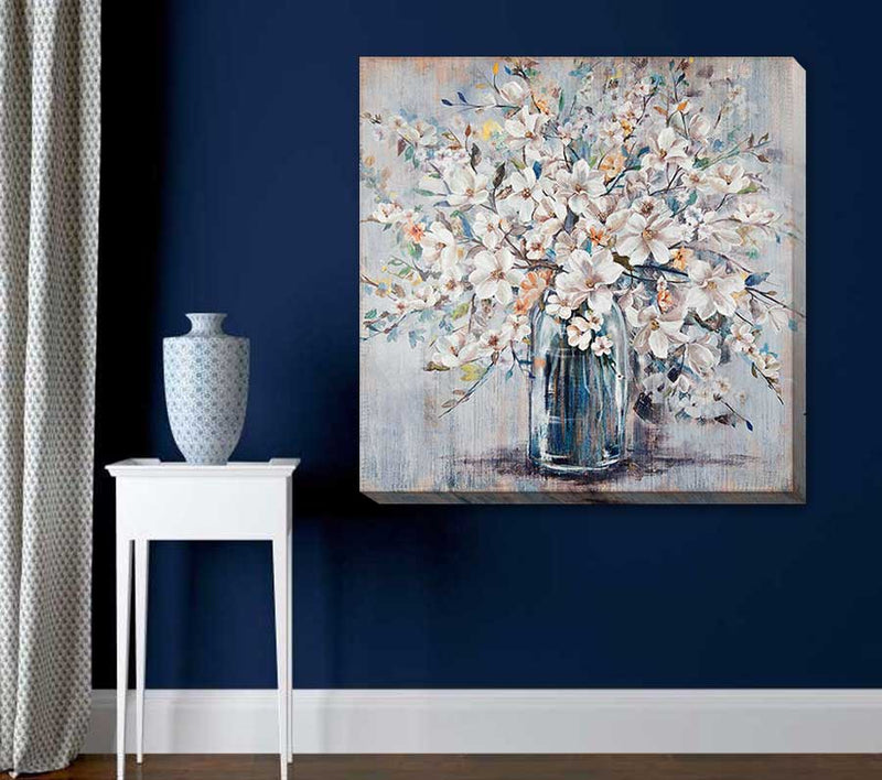 Dramatic pops of colour and expressive textures make a bold statement in your space with White Blue Flower Canvas Print from HY Wall Art.