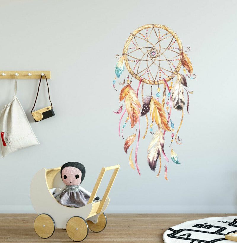 Echo bohemian style in your space with the fine line drawing of Dream catcher Wall Decal from HY Wall Art.