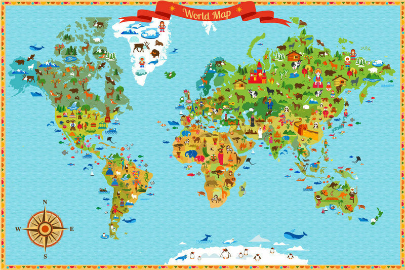 Showcase love and happiness in your kids room with Animal worldmap Wall Decal from HY Wall Art