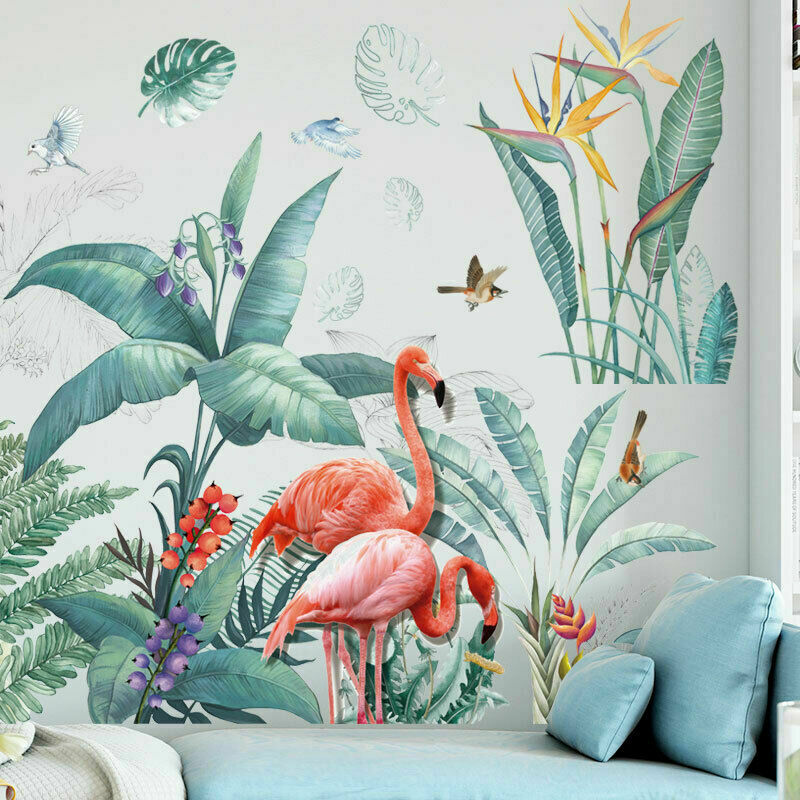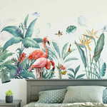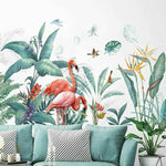 Tropical Plant Leaves Flamingo Removable Wall Sticker