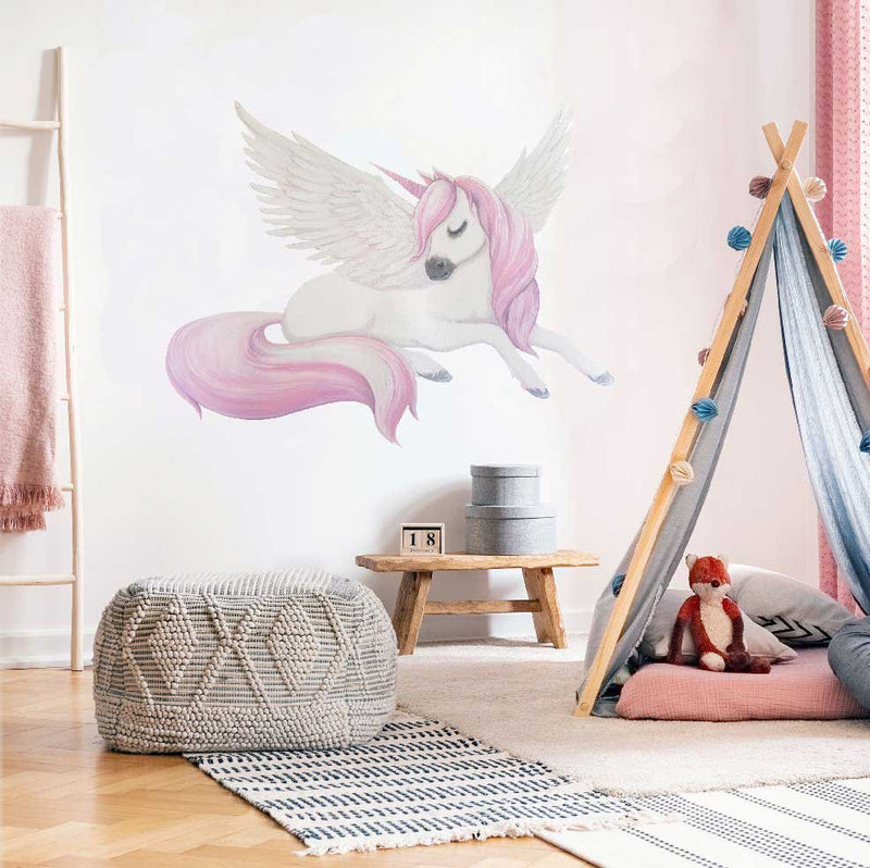 Brighten your Girls room space and add cute chic looking on your nursery wall with Unicorn Pegasus Wall Decal from HY Wall Art