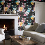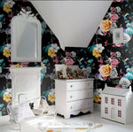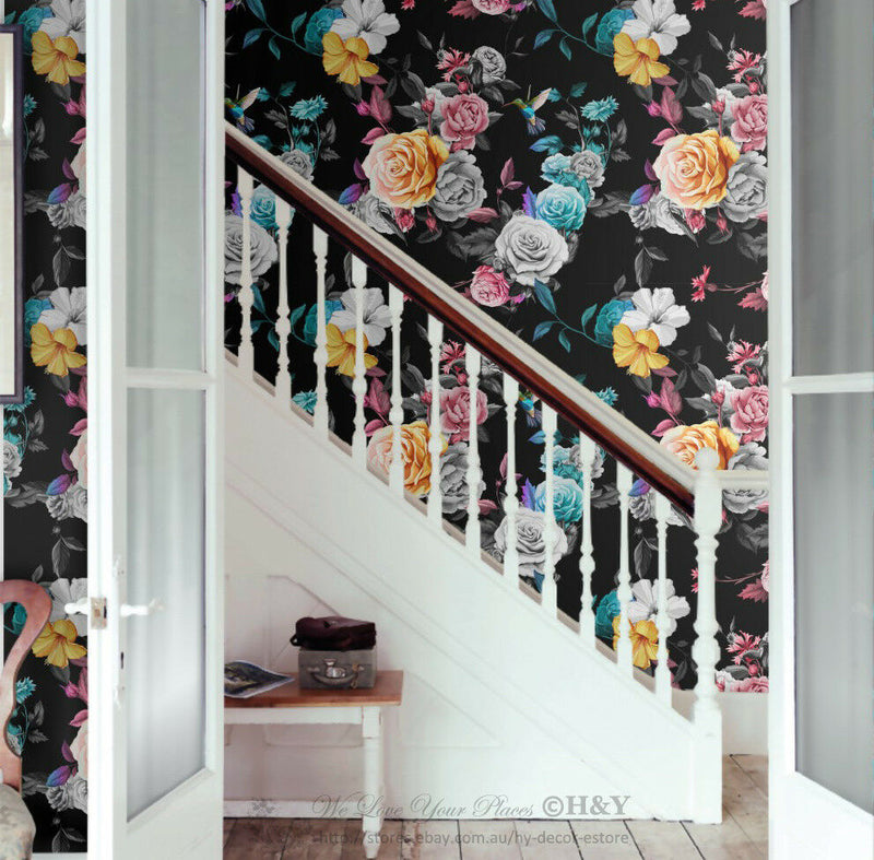 Birds Flower Black Wall Paper Print Removable Mural Covering Wallpaper Decor B13