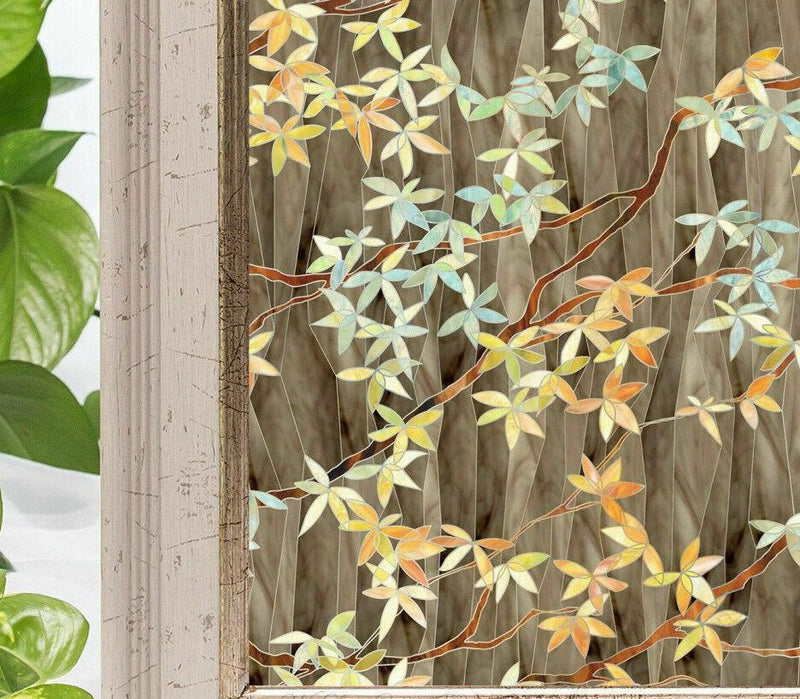 Creates visual impact of stained glass and Brighten your windows or glasses in seconds with botanical designs of wild wood Window Film from HY Wall Art.